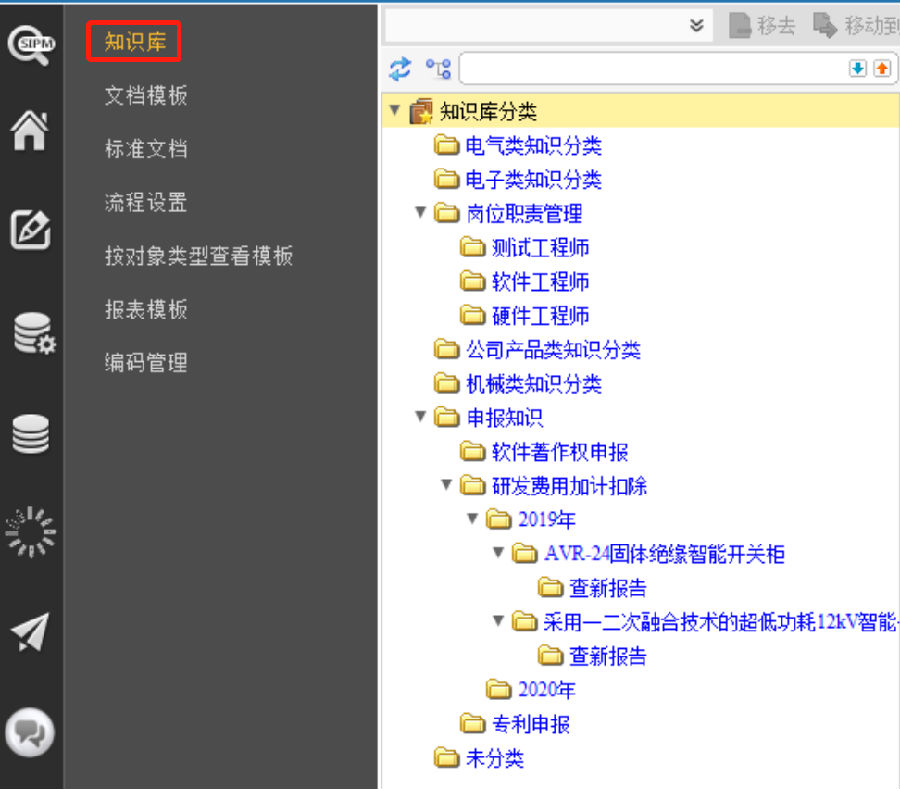 5) 知识库:利用SIPM/PLM知识管理模块,建立公司知识库,实现企业的知识积累,并实时共享,达到企业知识高效传承的效果。