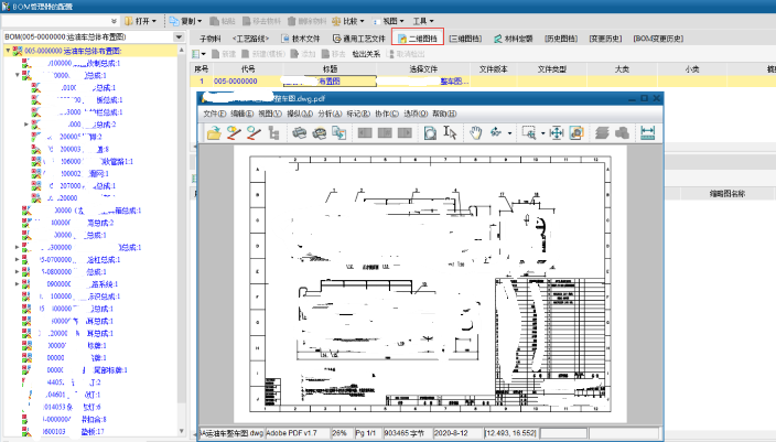 3. 以BOM为纽带,各类技术文档、图纸等信息集中关联展现,实现所有设计数据有效管控。工艺部门通过BOM结构在线查看图纸并进行工艺路线设计工作,替代线下图纸传递,提高工作效率。