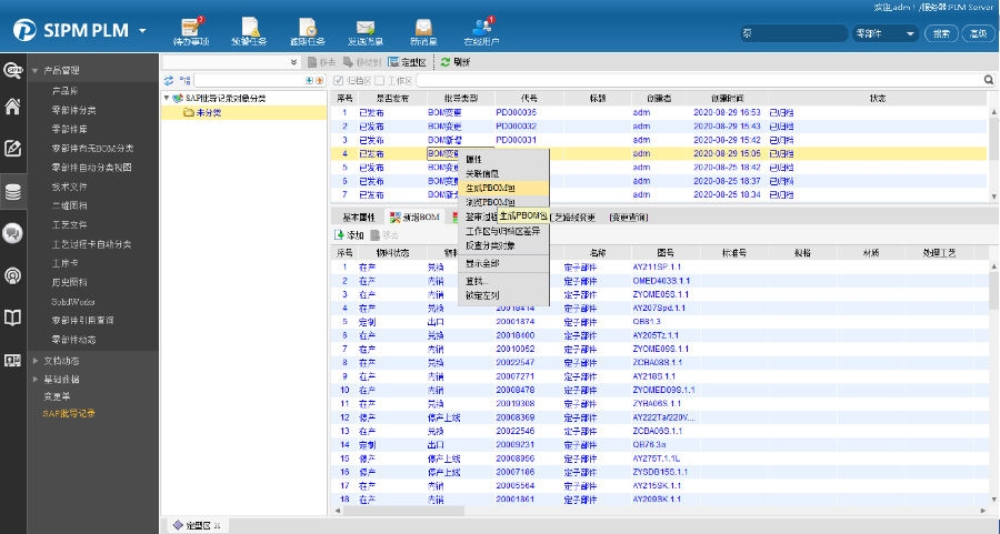 SIPM/PLM实现输出标准的ERP及销售系统导入表格式数据,同时提供PBOM发布功能。