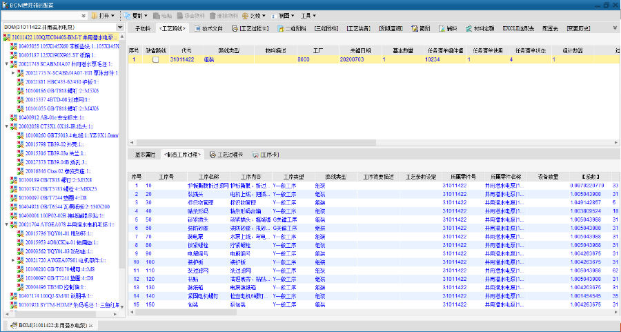 以设计BOM为基础,工艺部门在设计BOM的基础上,以PLM平台已经完善、标准的工艺基础数据库基础上进行工艺设计,确保工艺设计过程规范、标准;PLM系统提供的材料定额模块(提供公式计算功能),避免人工计算的错误发生。工艺数据清单、材料定额明细在完成工艺设计后程序自动生成。