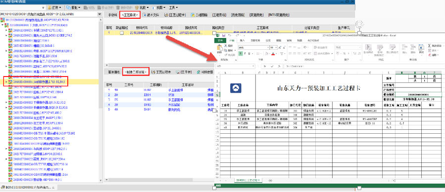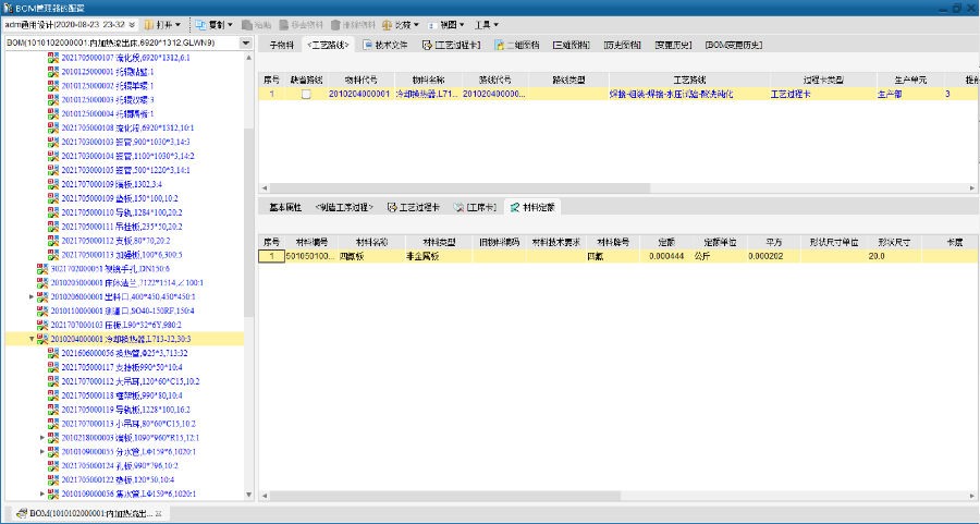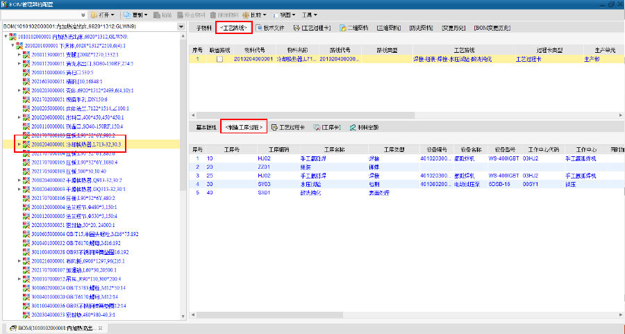 以设计BOM为基础,工艺部门在设计BOM的基础上将材料定额信息及工序过程中的半成品信息进行补全,形成完整的工艺BOM及工艺路线信息。