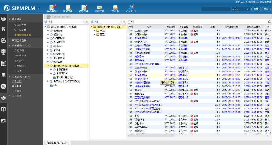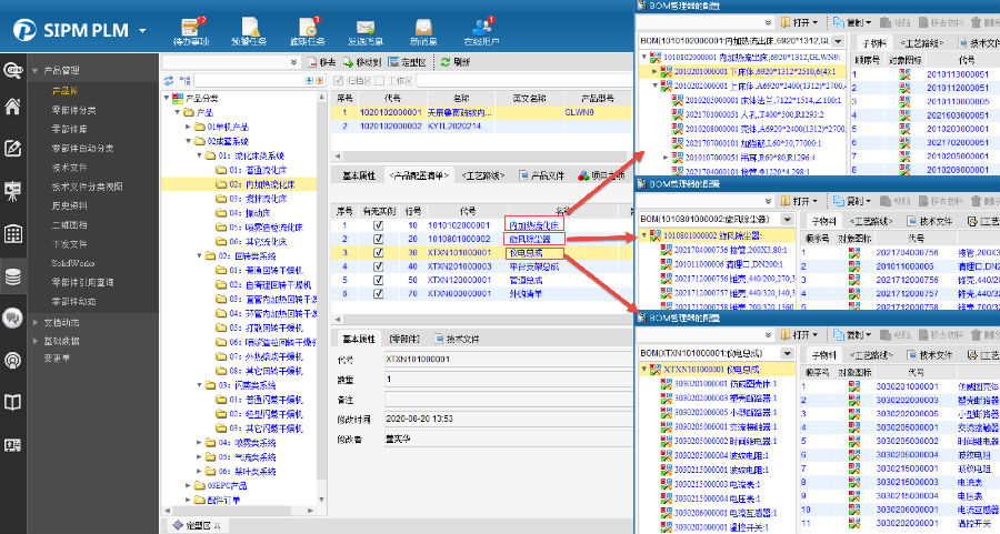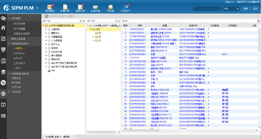 天力公司产品设计多为非标产品,新产品设计需要多个部门协作完成。通过SIPM/PLM系统将产品架构进行重新梳理,将产品分解为多个模块,实现各个部门间的协同设计;零部件的各技术资料在同一界面齐套管理。