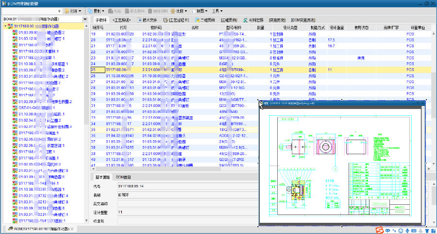 CAD软件集成,自动提取图纸信息,形成以BOM为主线的数字化管理模型。