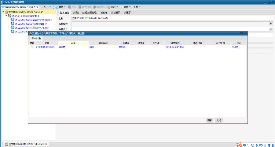 对物料的使用状态进行管控,如新产品设计中,不能含有停用的物料。