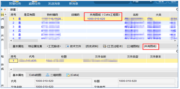工程师只需在需要共用的零部件中维护共用图纸的零件号,系统自动将共用图纸关联过来,大大节省设计时间和公用图纸的利用率;