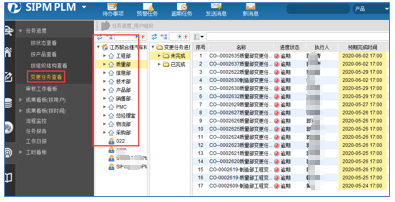 变更任务查看,可实时查看部门及个人工程变更任务的执行情况;