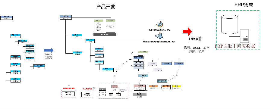 通过PLM-ERP接口管理,打通PLM设计、ERP生产的整体业务数据流,实现零部件库、制造BOM的数据传递。