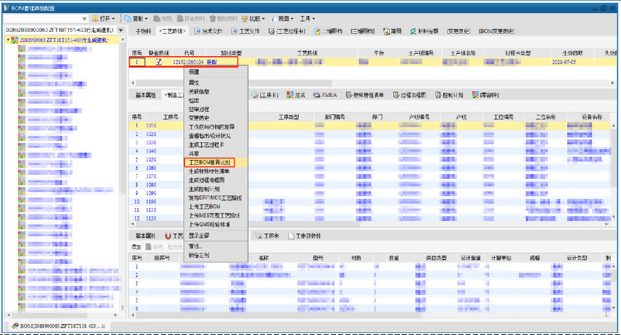 2、以PDM物料、BOM数据为源头,建立结构化工艺路线及工艺BOM