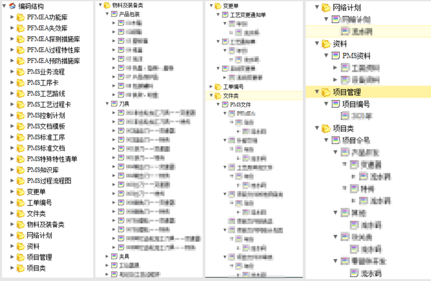 3) 建立适合企业管理需求的编码体系,实现对物料、技术文件、工艺数据、项目和其它过程资产的的统一编码;