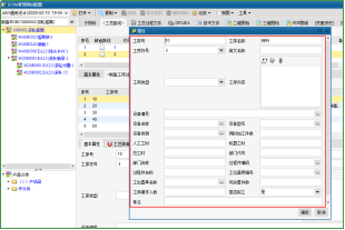 标准工序调用过来后,接着维护工序顺序号及其它加工属性,以及该道工序要用到什么类型的设备及工位器具等