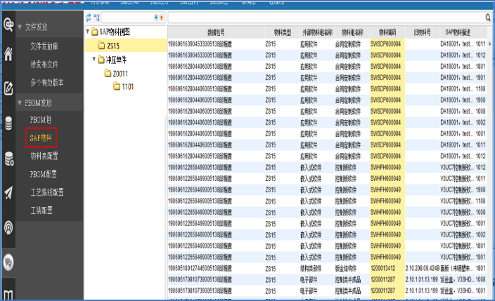 在完成SAP属性维护后,点击往SAP传数据时,系统就会自动对PBOM包内的SAP物料属性有效性进行检测,检测通过后就开始往SAP传送数据