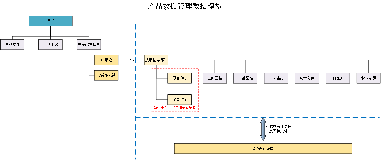 以产品BOM结构为枢纽,实现对产品的技术文件、设计图纸、原材料及工艺设计等一体化管理。