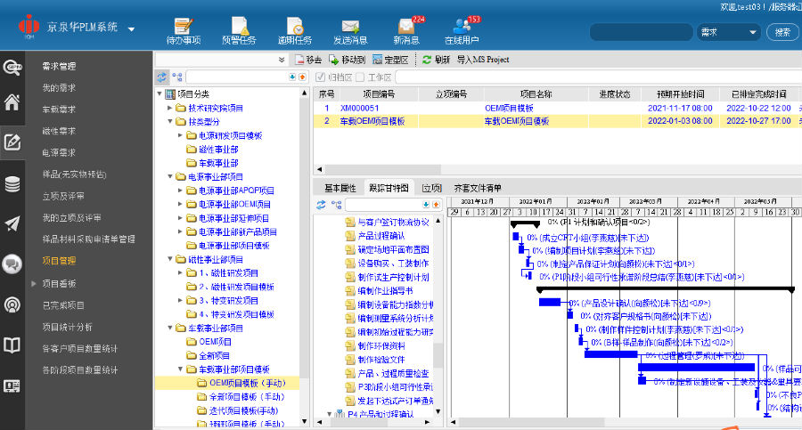 建立项目研发流程的标准化,实现不同项目类型及产品线,能快速进行项目策划