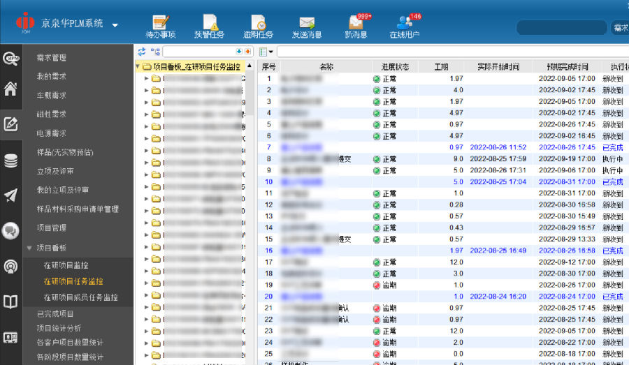 PLM系统开发多张汇总报表,减少手工汇总工作量,数据/流程的追溯、项目绩效统计需求的统计及时满足外审需求