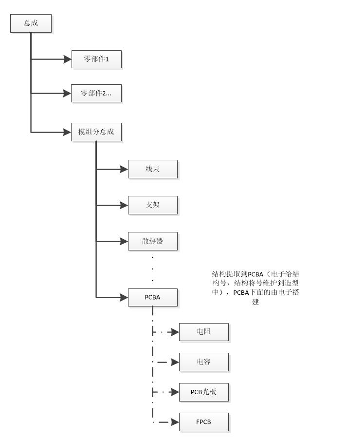 由结构定产品主体BOM,电子在结构BOM基础上进行细化