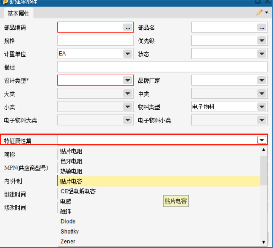 零部件中建立元器件库,嘉利车灯具体的元器件属性定义不同并实现特征(差异)属性,实现元器件的描述属性的规范填写;