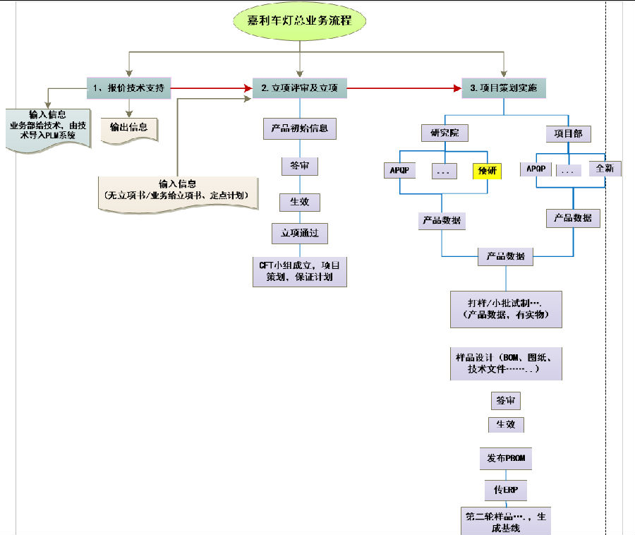 实现嘉利车灯从报价技术支持、立项评审、项目立项、项目策划实施的整体业务管理