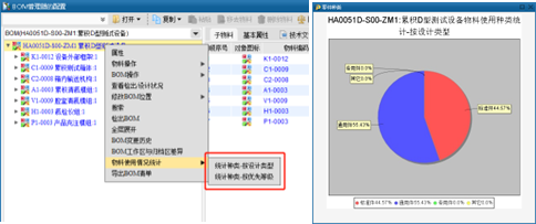 根据企业管理层需求,需要了解产品设计组成(按零件设计类型或优先等级)情况,以及通过统计产品零件重复引用率或引用次数作为作为零部件专用/通用类型转换的参考数据。