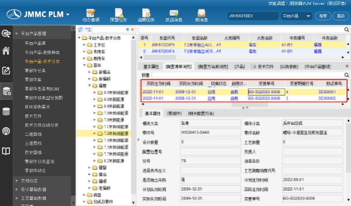 平台产品配置清单中设置计划生失效时间与实际生失效时间,分别记录技术端变更申请切换时间,与制造端实际切换时间,并通过视图显示当前生效的版本供技术查阅。