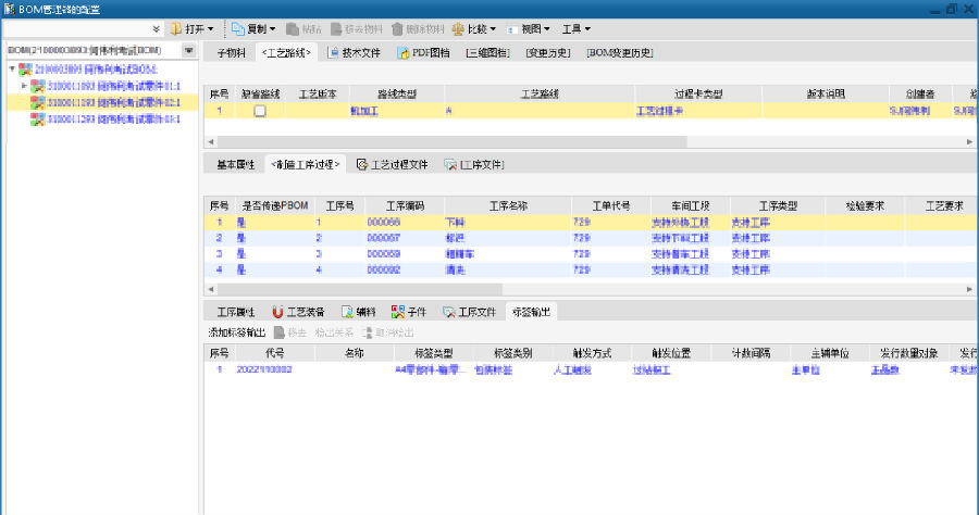 2.在plm系统中搭建工艺路线、制造过程、标签输出等、结构层次分明。