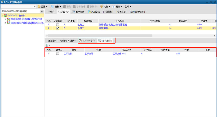 3.工艺过程中的过程文件、工序文件关联到相关工序下: