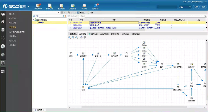 PLM系统将所有需要录入系统的数据进行分类,分别建立对应的流程,并且以可视化的形式进行显示。