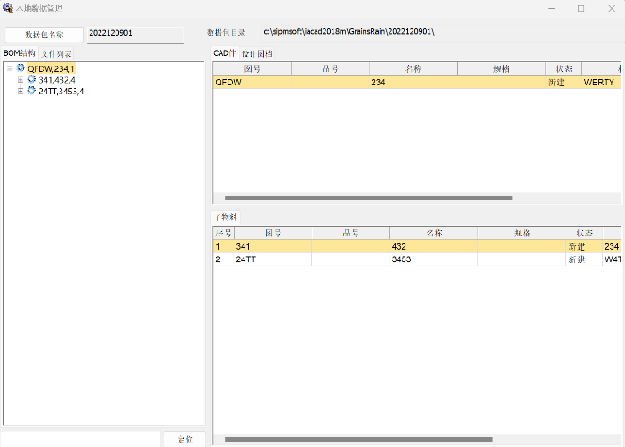 在二维软件设计后,其产生的图纸通过接口上传到PLM系统,图纸中包含的物料信息(图号、零件名称、产品名称、材料、规格型号等)、BOM结构等数据将通过接口被PLM系统提取到数据库中,而图纸自身会被保存到文件服务器中,并与对应的零部件等信息进行关联,PLM端可以对图纸进行在线浏览。