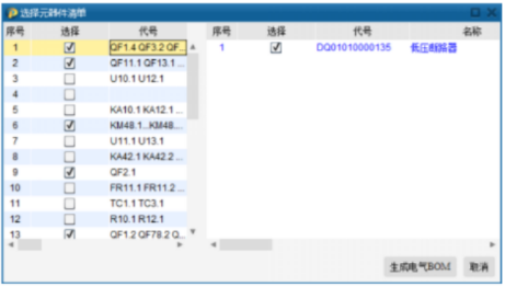 电气元器件在PLM系统支持通过规格选择,快速搭建电气BOM。