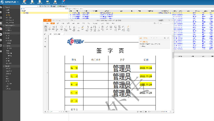●产品研发中的图文档、技术文件通过工作流流程进入系统,系统自动实现电子签名后打印发放,确保现场技术文件与系统中状态、内容保持一致;