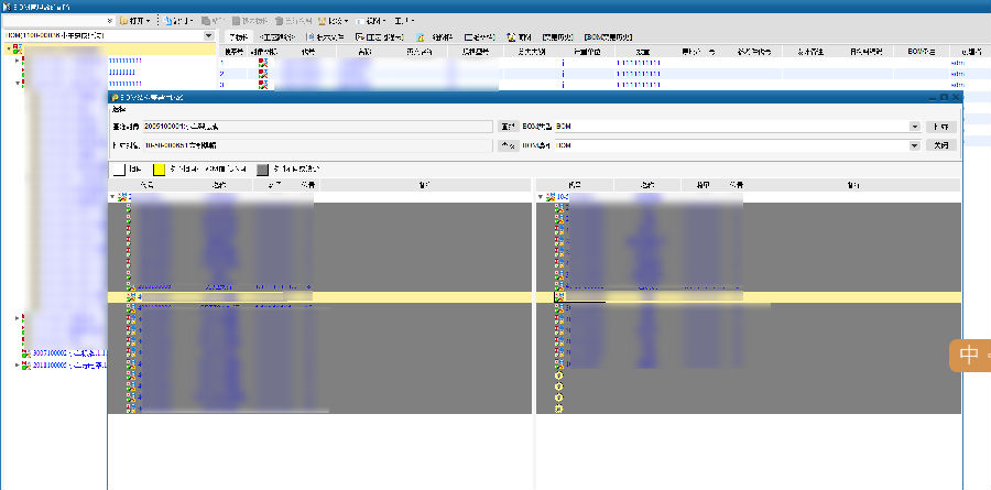 7) 实现BOM数据比较功能,能依据两个不同的BOM,通过系统比较直观的反映其差异性。