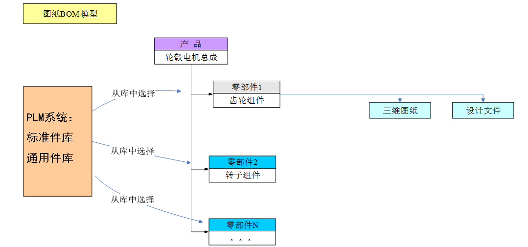 以BOM为产品数据信息管理的枢纽,通过BOM实现产品一体管理,所有与产品相关的设计输出数据及文件图纸等都可以通过BOM纽带查找浏览。