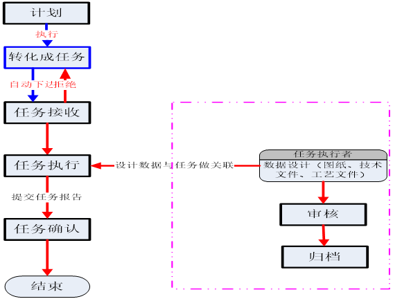 将产品设计和变更过程通过任务管理进行串联管理,通过任务时间对任务进度进行把控,通过任务输出关联文档模板达到对文件格式的把控,通过要求任务确认过程确保任务输出的完整性;输出通过签审流程保证其正确性与有效性。