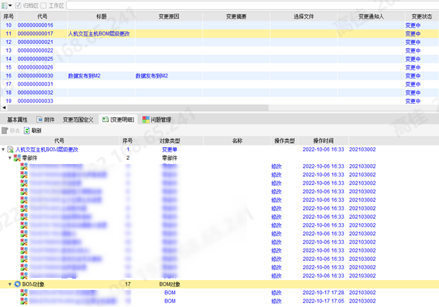 4、工程变更在PLM系统中贯穿产品的整个生命周期,所有的变更均形成变更履历进行记载,实现了工程变更的可追溯性;