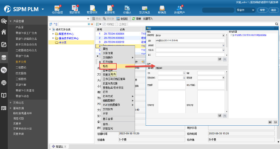 工程师在PLM系统查找到需要变更的数据进行检出操作并维护变更单后进行数据的修改,实现变更历史可追溯。