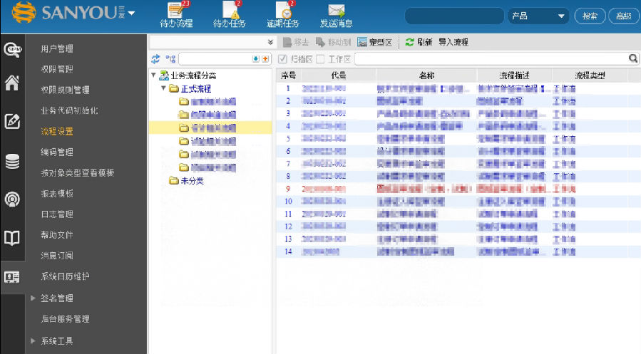 5) 流程管理:利用SIPM/PLM标准化管理模块,以部门业务差异构建流程分类,根据业务管理对象固化相应签审流程。