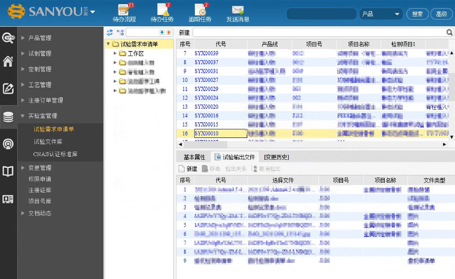 7)试验管理:通过试验管理,以试验需求申请单为纽带,记录试验输出文件,形成试验库。