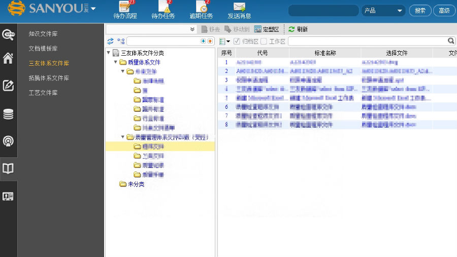 4)标准文档:利用SIPM/PLM标准化管理模块,建立公司标准文档库,根据企业业务模式构建不同地域分类,打通数据关联通道,标准文件关联物料、项目。