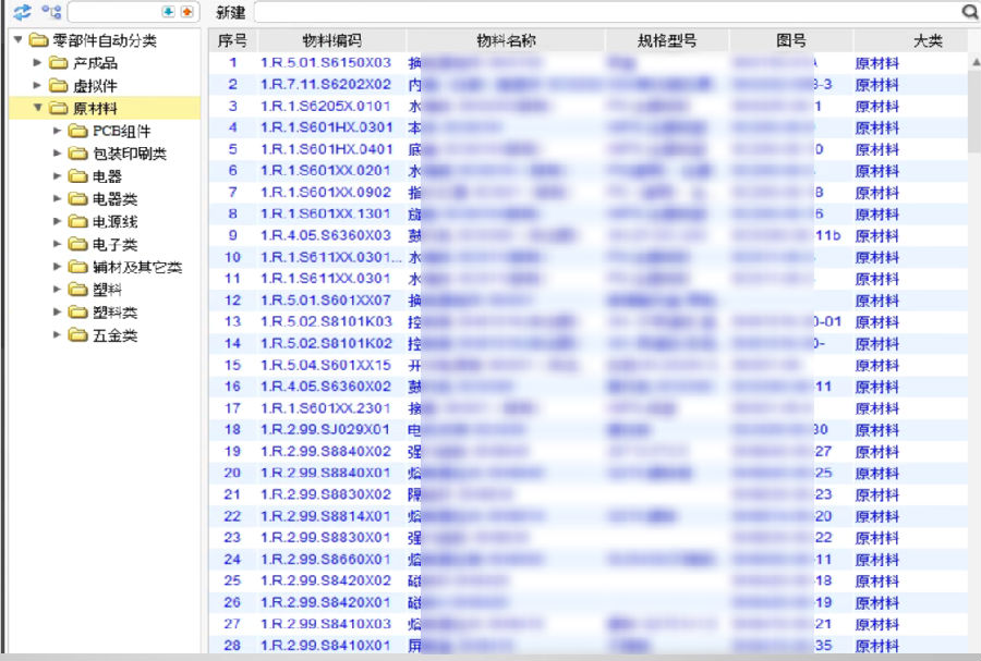 零部件(物料)按物料类别分类(根据物料大类、小类,系统自动产生分类。