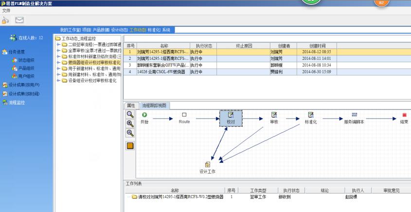 对产品开发的流程进行管理借助SIPM/PLM系统的项目管理和工作流功能,流程是为了实现一个目标的业务活动,所有的工作通过一个或多个步骤来实现,流程使得这些业务活动自动化。在执行流程的过程中,通过流程步骤使文档、任务、信息等在不同人员之间传递。工作流程大到一个产品的整个生命周期的流程,小到一张图纸、一个文件的审批流程。PLM用户可以建立串行或并行的工作流程,使得工程技术人员并行地协调工作。当用户打开我的任务看板时,就可以看到最新的工作任务清单。项目发起人或负责人可以随时查看整个项目的执行状态,直到该工作全部完成。