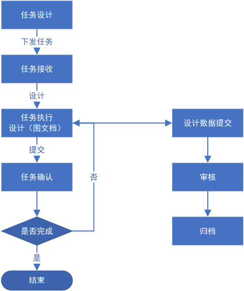将产品设计和变更过程通过任务管理进行串联管理,通过任务时间对任务进度进行把控,通过任务输出关联文档模板达到对文件格式的把控,通过要求任务确认过程确保任务输出的完整性;输出过签审流程保证其正确性与有效性。