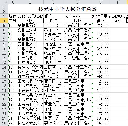 湖南机油泵已将全部技术中心的员工纳入统计范畴,统计的依据是每位员工每月的任务得分的汇总,任务提前或按时完成的正分,否则得负分,因此任务完成情况越好,得分就越高。