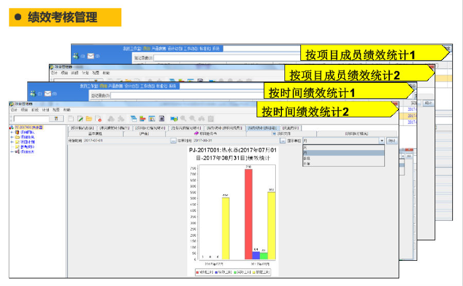 绩效管理可视化,通过系统中的数据,按不同的维度将绩效统计以图形化进行展示。