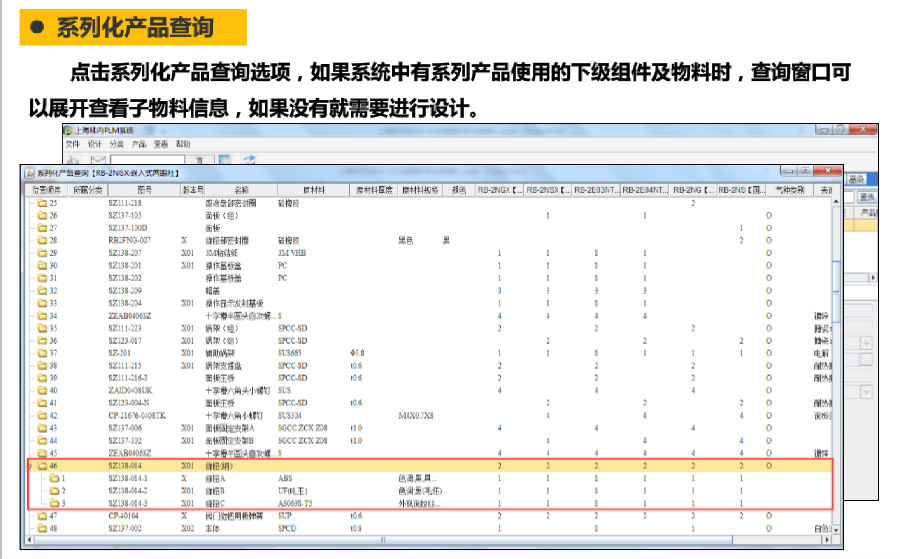 系列化产品众多,以系列化产品的管理方式将所有物料进行展示。