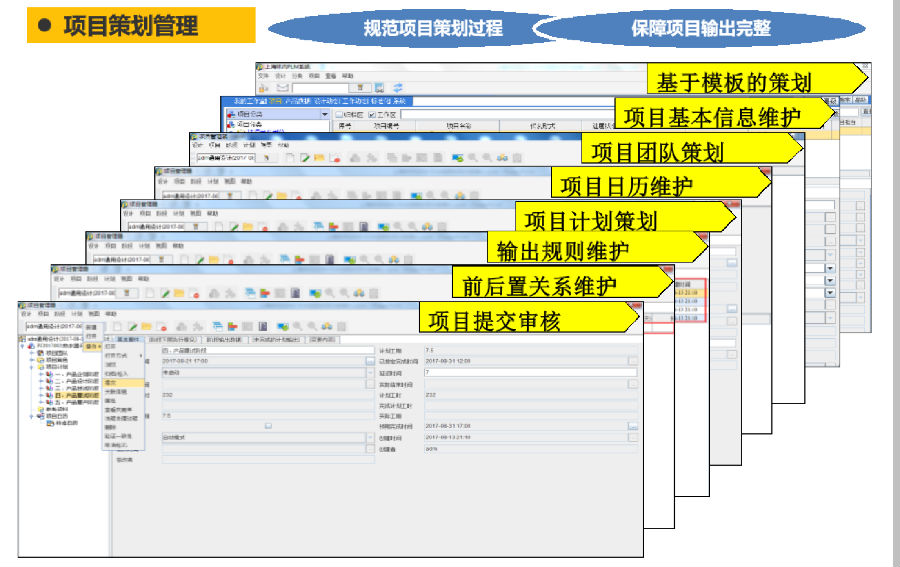 项目模板管理可以快速的进行计划编制、规范化项目执行流程、对项目输出进行控制。