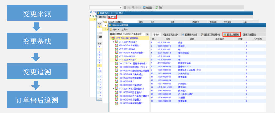 通过变更基线管理,可按需追溯变更前的图纸,方便售后维护过程调用。