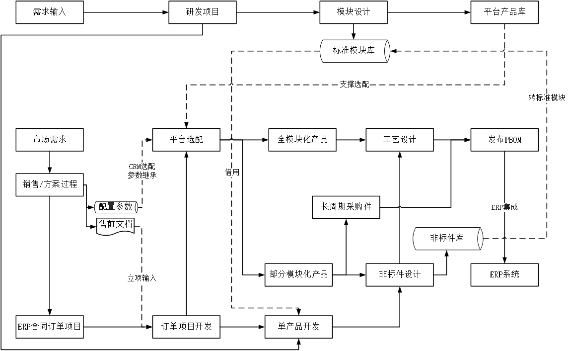 通过与CRM系统的集成,将相关平台产品参数等信息传输到PLM系统,供产品开发选配。