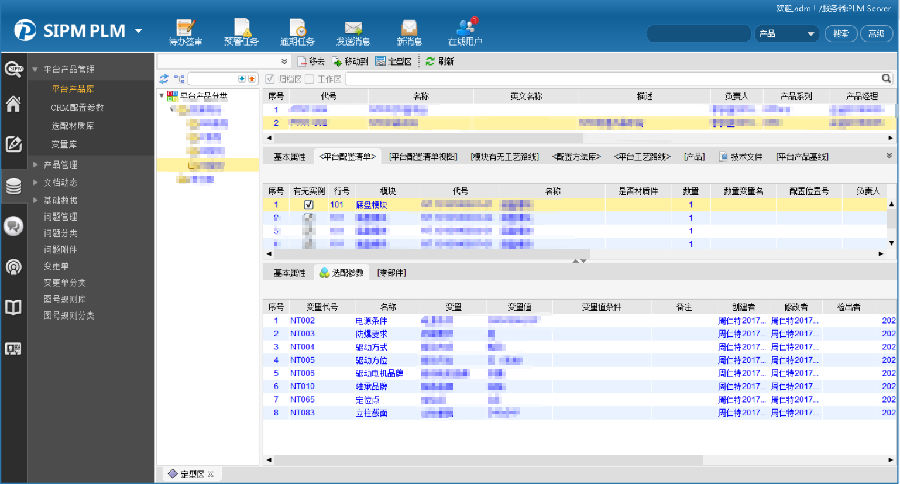 根据快速选配订单的研发设计需求,基于PLM系统平台产品模块,实现了对应产品开发阶段的平台产品管理。