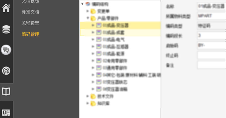 通过思普PLM系统各类基础数据库管理,提升了产品设计基础库标准化管理水平,通过PLM平台实现零部件编码系统取码,减少重复编码现象,零部件编码规则系统固化有序管理,设计研发知识库及文档模板、标准文档、流程设计等统一平台化管理。