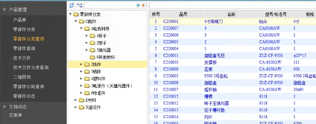 1、 零部件分类:零部件库按照编码规则自动分类管理。