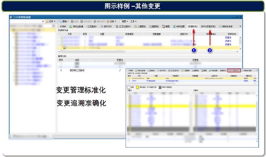 每一次变更系统都会有变更记录,BOM有BOM差异比较,文件有文件的历史版本,可供查阅与下载。